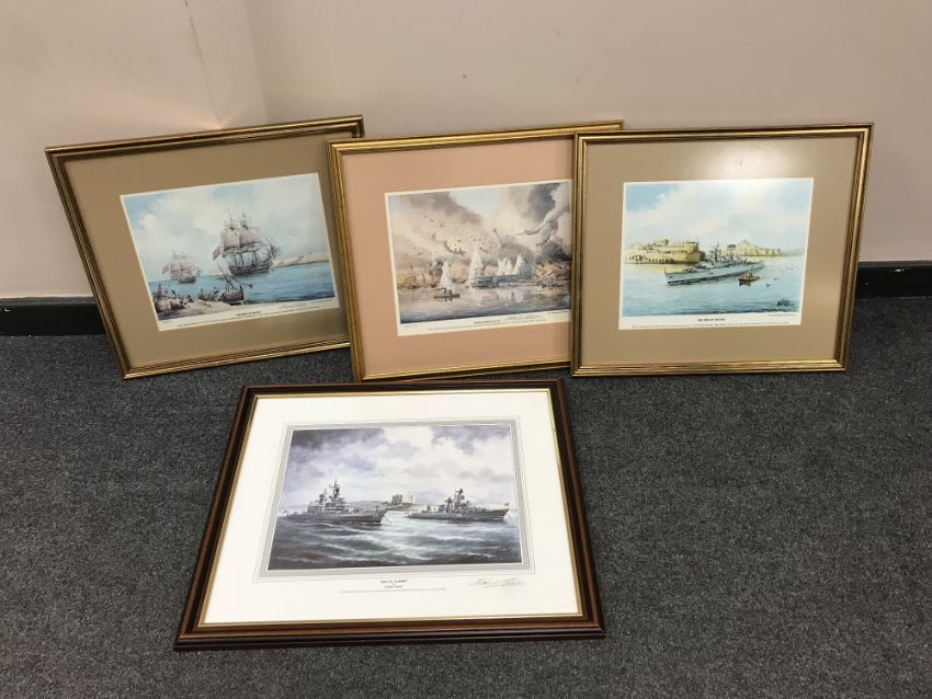 After Edwin Galea : Malta Summit, colour print, signed in pencil, together with three further colour prints by the artist, two of which are signed.