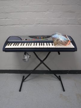 A Yamaha PSR-240 electric keyboard on stand with booklet