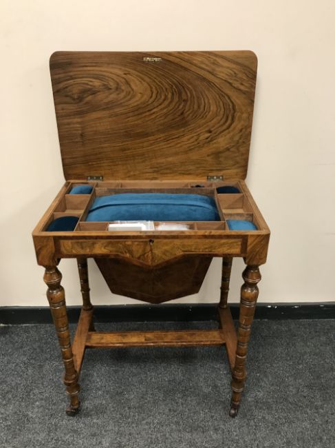 A Victorian inlaid walnut work table