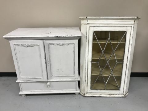 A painted Victorian corner cabinet and TV cabinet