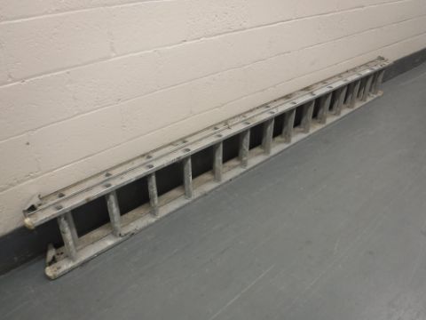 An aluminium extension ladder