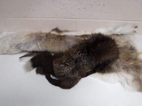 A fox fur together with a deer skin rug