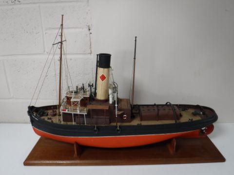 A remote control model boat on wooden stand 'Earl Grey, Newcastle Upon Tyne'