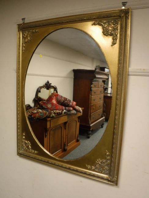 A Victorian style gilt framed oval mirror, 92cm x 116cm