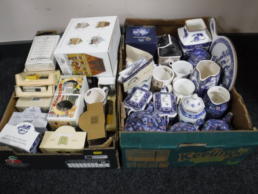 Two boxes of assorted boxed and unboxed Ringtons china and die cast vehicles
