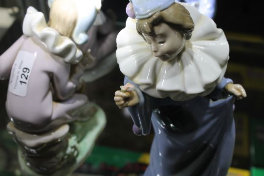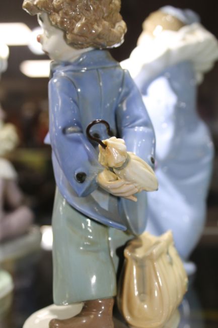 One clown with a chip to the umbrella near the handle. Another with typical losses to the flower in his hand. Otherwise good condition.