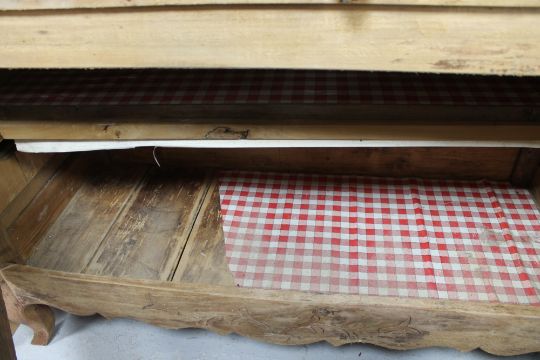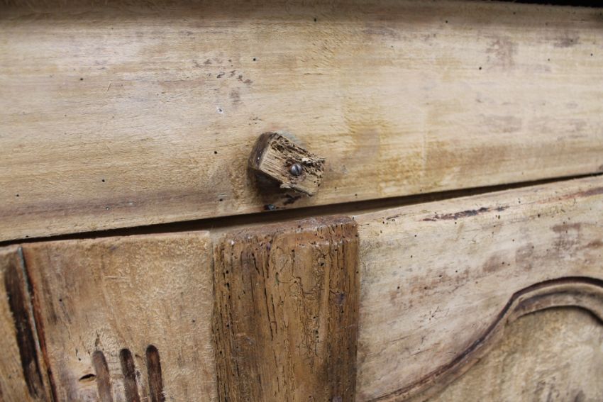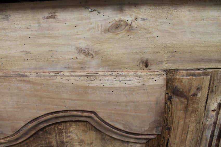 In very rough, rustic condition. Heavily wormed. See the additional images.
