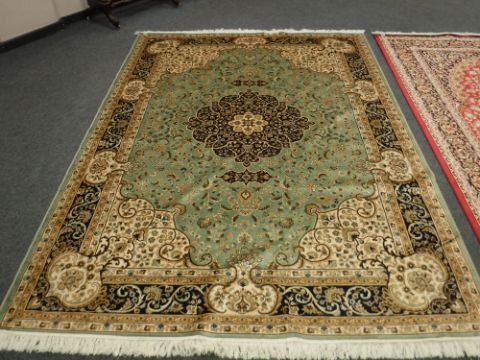 A Keshan carpet on green ground 280 cm x 200 cm