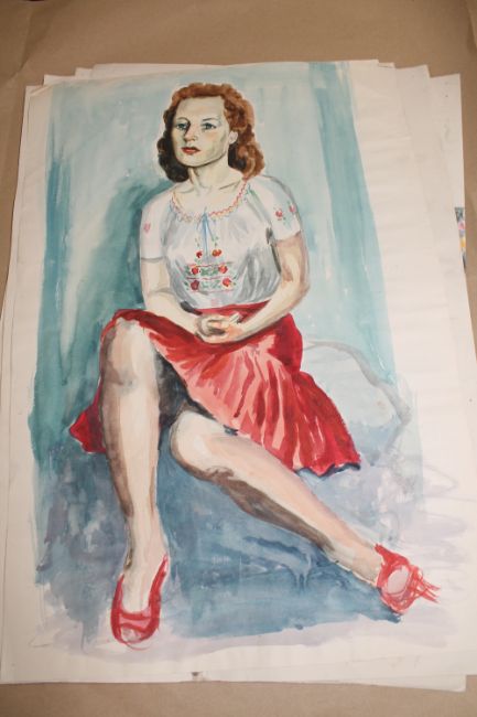 John Armstrong : Five artists painting in an art class, watercolour, 56 cm x 38 cm, together with nine further illustrator's watercolours by the same artist, unframed. (10) CONDITION REPORT: John Armstrong is a renowned artist and famous illustrator of children’s comics. He attended art school in Middlebrough's Constantine College, where he graduated in Intermediate Arts and Crafts. He started as a commercial artist for a Newcastle ad agency while also doing book illustrations. He eventually also took on drawing comic strips and has mainly worked for the UK girls' titles during the 1970s, 1980s and 1990s. After a ballet story published in Girl's Crystal, he drew 'Cherry and the Children' for five years in School Friend. Armstrong is best known for his gymnastics strip 'Bella', that ran in Tammy. By 1978 he was drawing 'Moonchild', a girls' story with horror elements, for Fleetway's Misty. In the 1980s he drew a comic based on the children's school drama 'Grange Hill' for Beeb and then began an association with the girls' titles of DC Thomson, drawing 'The Secret Gymnast' and horse stories for Bunty, among other things. He also produced much original artwork for the educational booklets published by Pitmans.