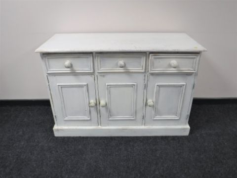A painted pine triple door sideboard