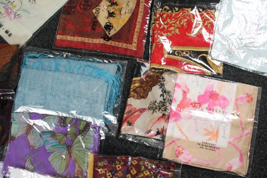 The scarves are modern Oriental examples which appear to be in very good condition.