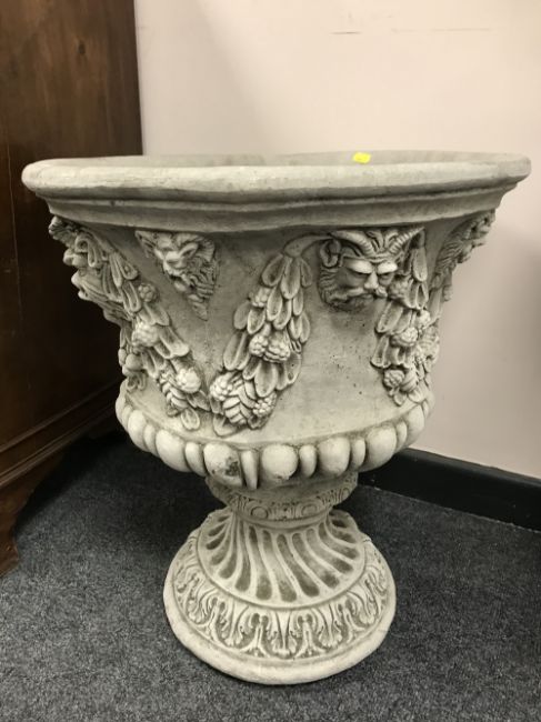 A pair of classical style composition garden urns, height 57 cm. (2)