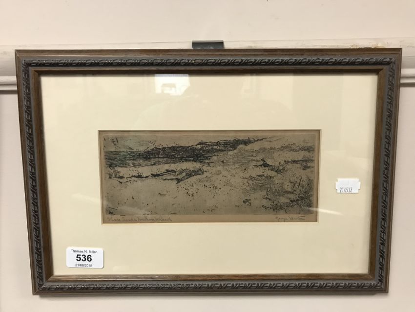 George Horton : Sluice sands, Northumberland, pen and ink, signed, framed.