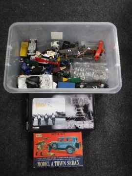 A box of die cast vehicles, some parts boxed, Corgi Centenary of War Finest Hour, delivery vans etc