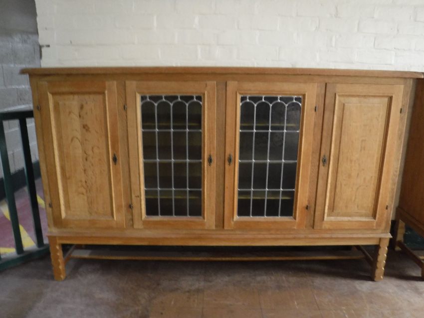 A blonde oak four door sideboard