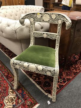 An Eastern carved chair with bone inlay, width 53 cm.
