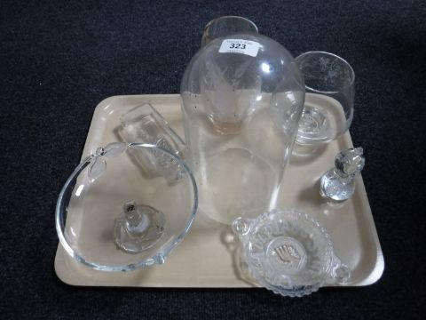 A tray of glass, WMF crystal comport, Caithness glass vase, glass dome etc