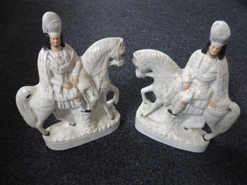 A pair of Staffordshire flat backed figures - Gentleman on horseback