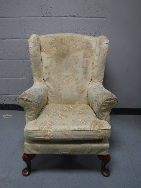 A mid 20th century wing back armchair