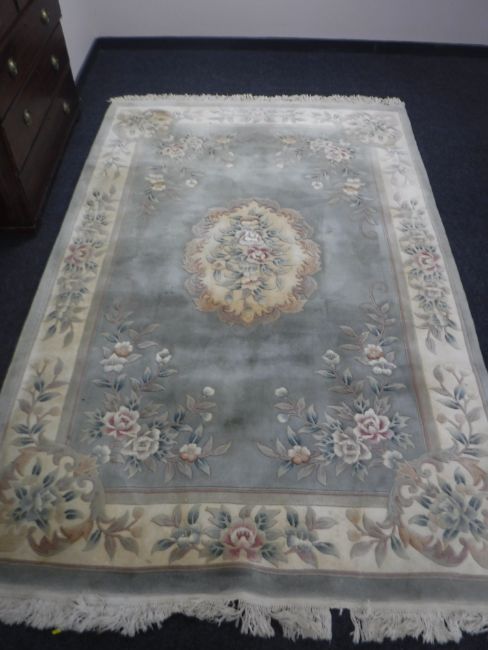 A fringed and embossed Chinese carpet