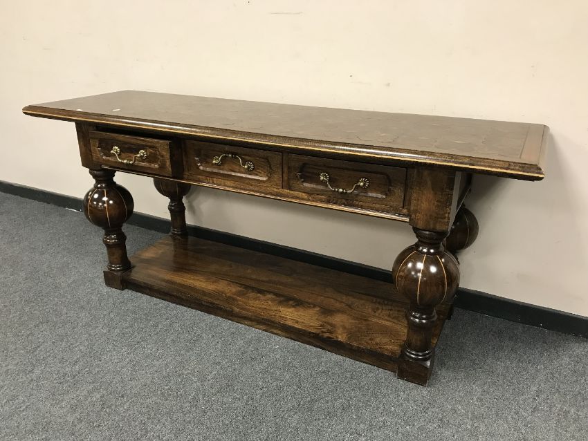 A Barker and Stonehouse three drawer hall table, width 181cm