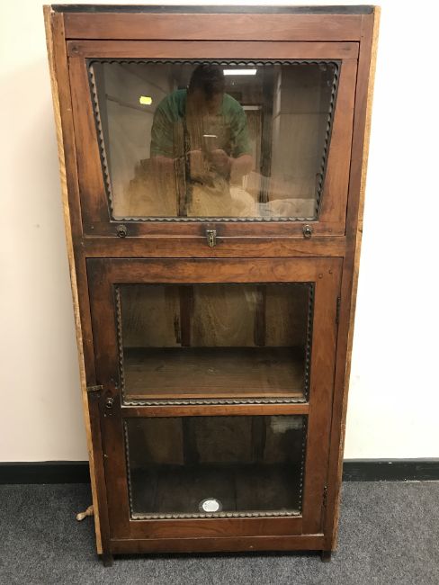 An Eastern hardwood fall-front glazed cabinet, width 69cm