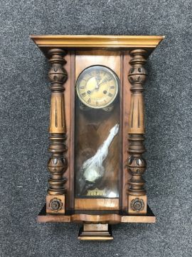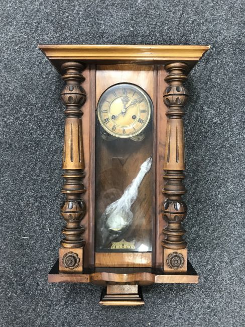 A mahogany cased eight day wall clock with enamelled dial