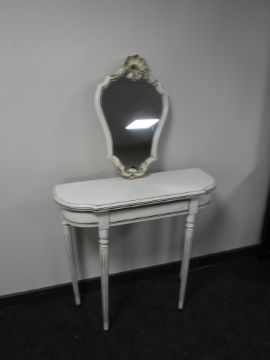 A cream and gilt shaped hall table with mirror