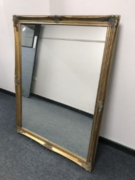 A bevelled overmantel mirror in ornate gilded frame, width 124 cm