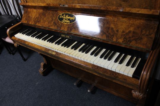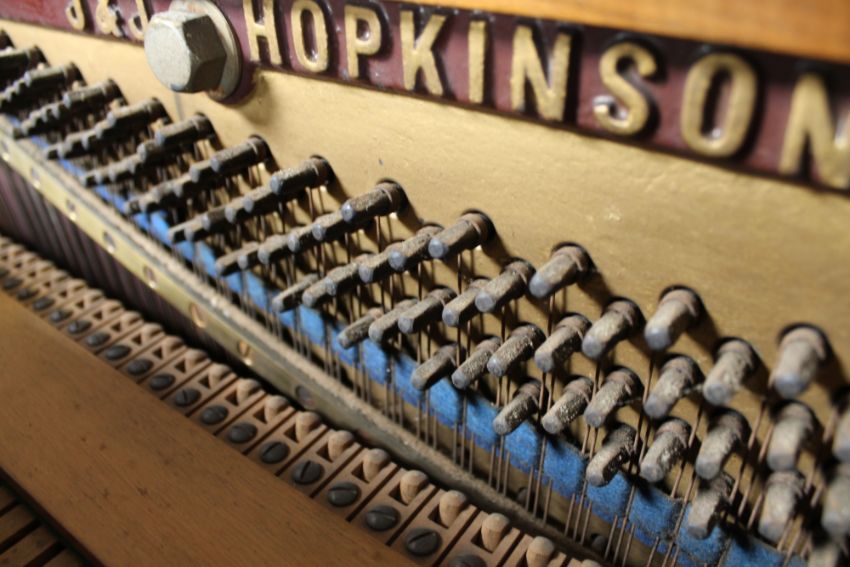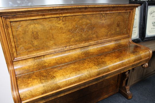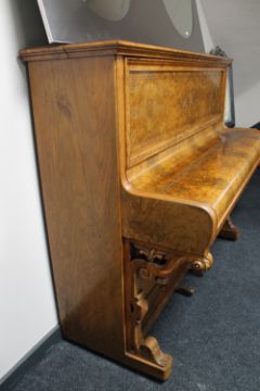 There are to areas to the front of the piano with vacant screw holes where a plaque or escutcheon has been at some point. Otherwise the case is generally in very good condition. This is not overstrung. See additional images.