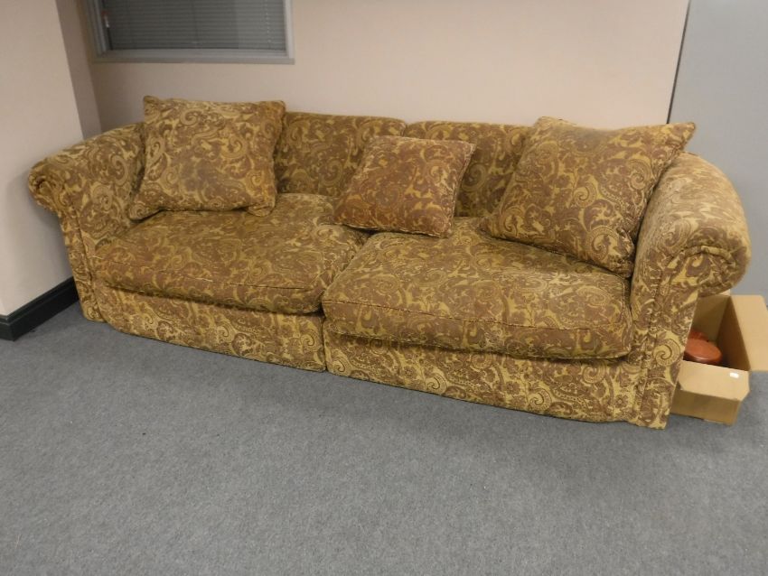 A contemporary settee in a paisley fabric