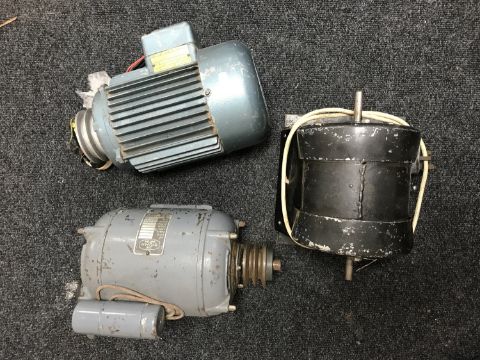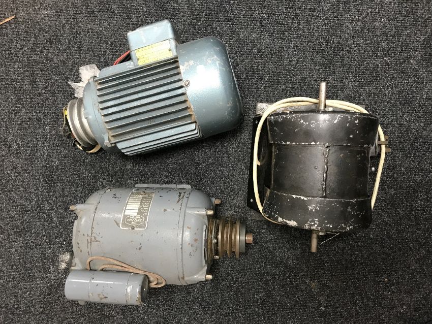 An industrial bench mounted buffer together with a box containing three industrial motors