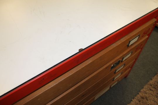 Larger chest is 150cm wide, 99cm deep and 72cm high. The pedestal is 55cm wide, 50cm deep and 62cm high. General cosmetic wear and tear but overall these are in good condition. The drawers function fine.