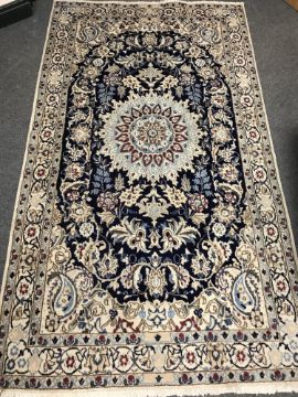 A fringed Persian Nain design rug on cream ground