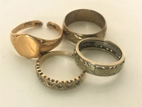 Four 9ct gold rings, 12g