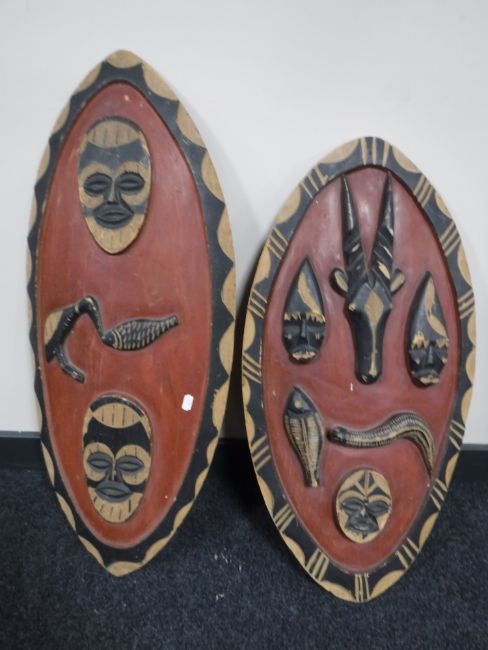 Two hand painted tribal shields
