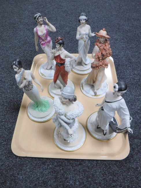 A tray of seven Art Deco Capodimonte figures