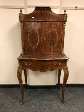 A continental inlaid Kingwood and gilt metal mounted secretaire, width 78cm with key