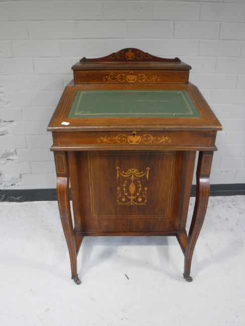A Victorian inlaid rosewood Davenport