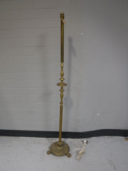 A decorative brass standard lamp