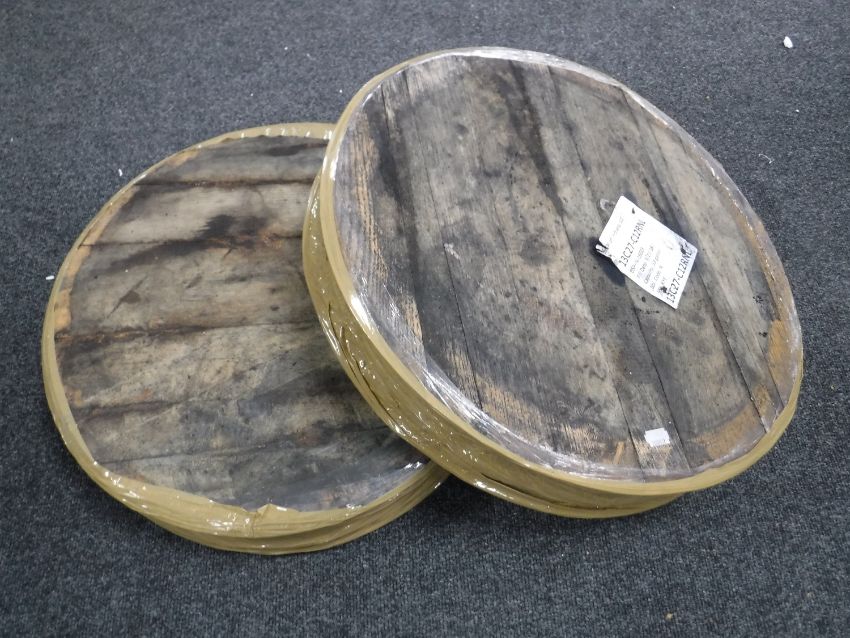 Eight oak whisky barrel lids