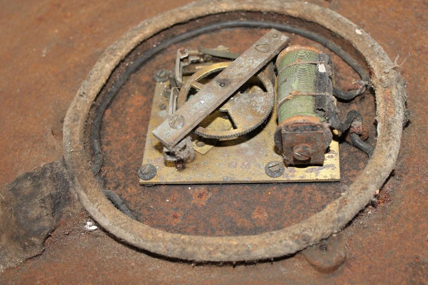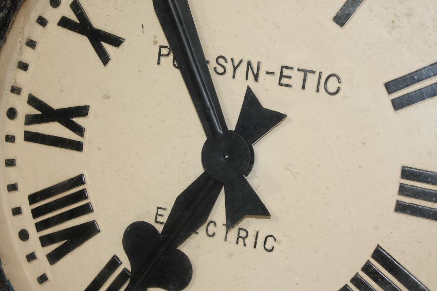 50cm diameter. Iron frame in weathered condition. Dial appears to be in good condition. Mechanism will require attention.