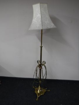 An early 20th century ornate brass rise and fall standard lamp