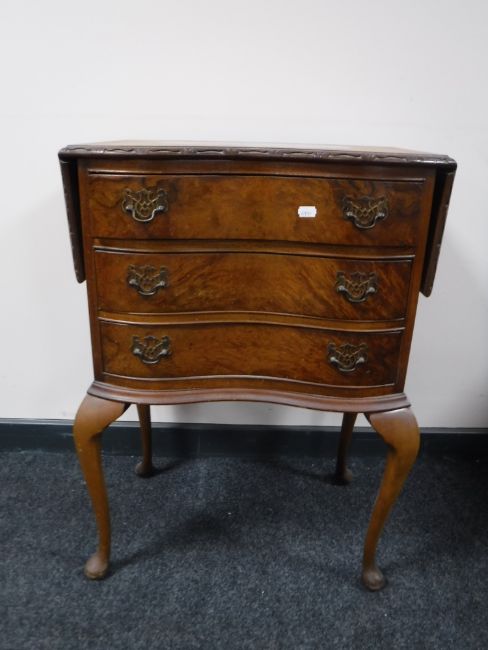 A walnut serpentine fronted flap sided three drawer chest