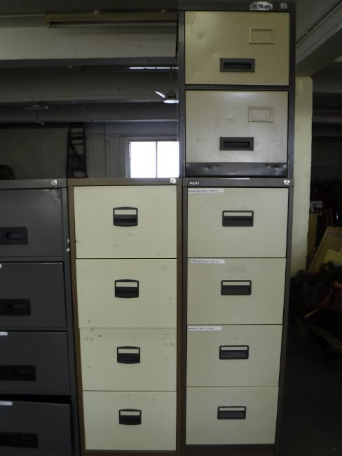Two office four drawer filing cabinets and a filing chest