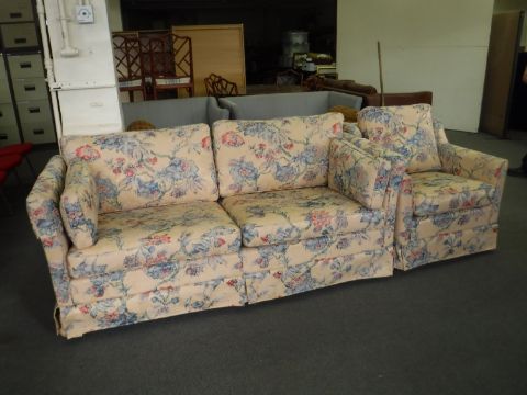 A two seater settee and armchair in floral print