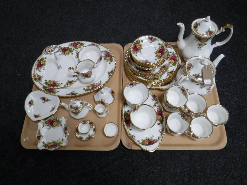Two trays of approximately forty two pieces of Royal Albert Old Country Roses tea china