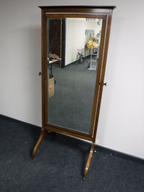 A Victorian inlaid mahogany cheval mirror