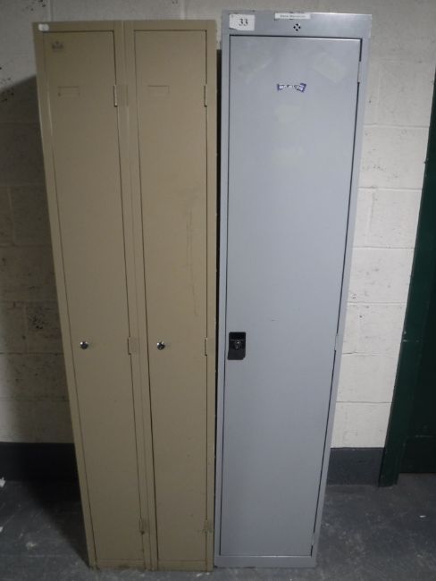 A double door metal locker, together with a single door metal locker (locked)