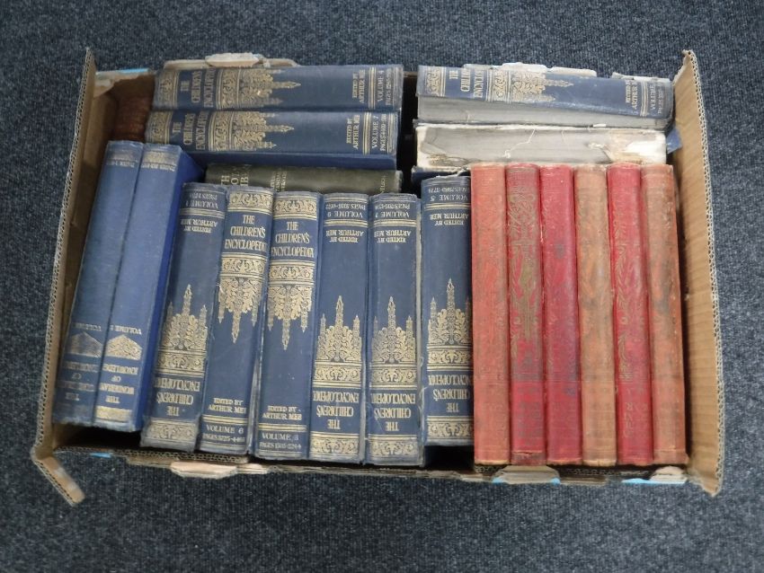 A box containing six volumes The History of the Great War, ten volumes Children's Encyclopaedia, two volumes The Wonderful World of Knowledge etc